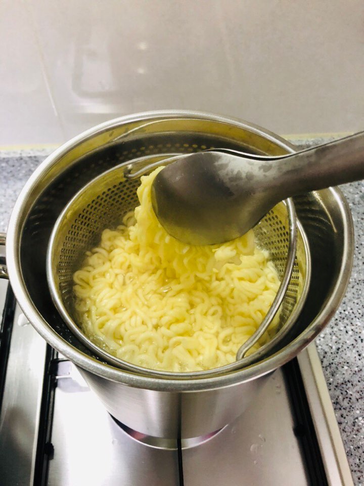 옆에서는 면을 삶아주세요. 저는 면기를 이용했답니다.