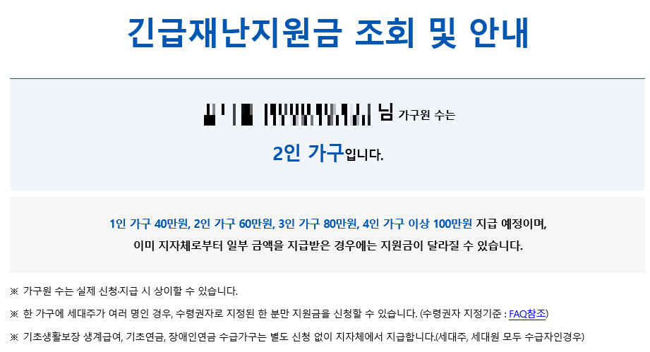 지자체에서 이미 지급받은 경우는 금액이 다를 수 있음.