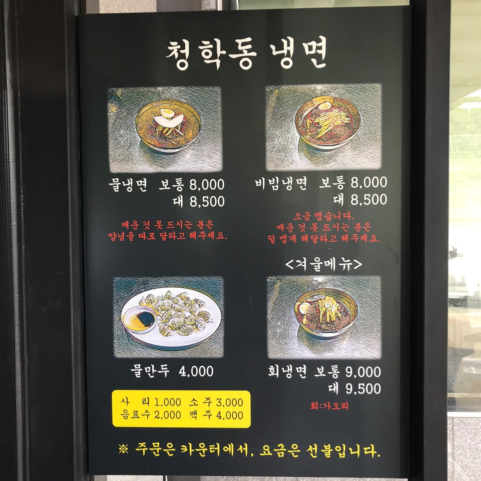 :: 청학동 칡냉면 메뉴
