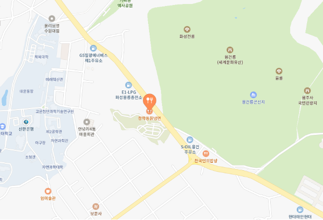 위치는 수원에서 빠져서 얼마 안가면 있는 화성 안녕동에 위치하고 있습니다. 바로 옆에는 융건릉 관광지가 있지요. 이 인근에는 맛집들이 엄청 많은데요. 그 많은 맛집들 중에 청학동 칡냉면 하면 모르는 사람이 없을 정도에요. 여름에는 정말 대기표 받고 줄 서서 먹어야 할 정도이니.... ㄷㄷ ;;