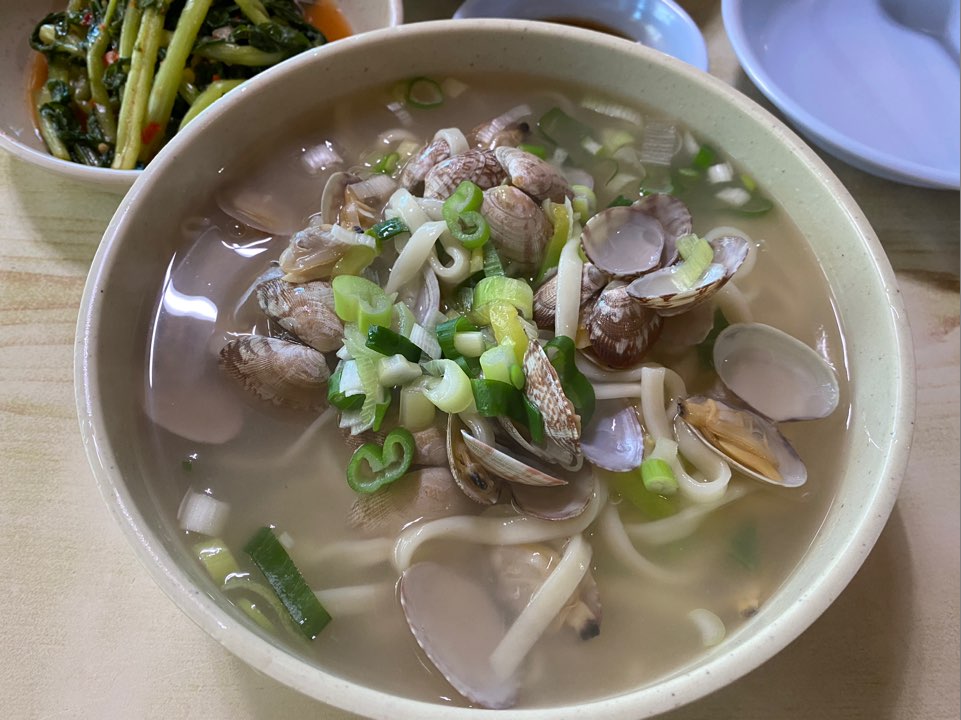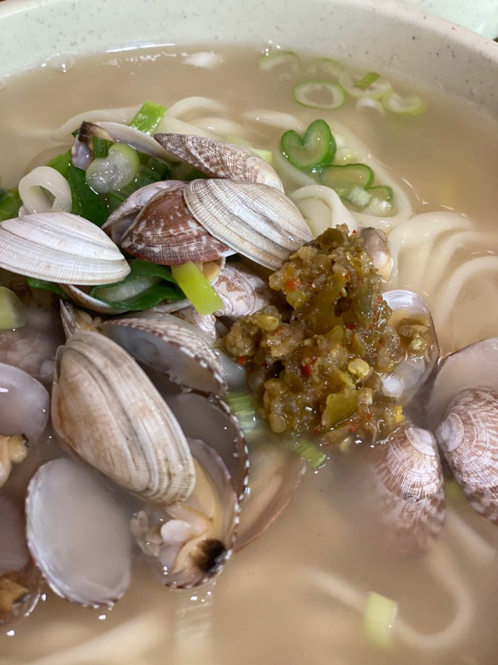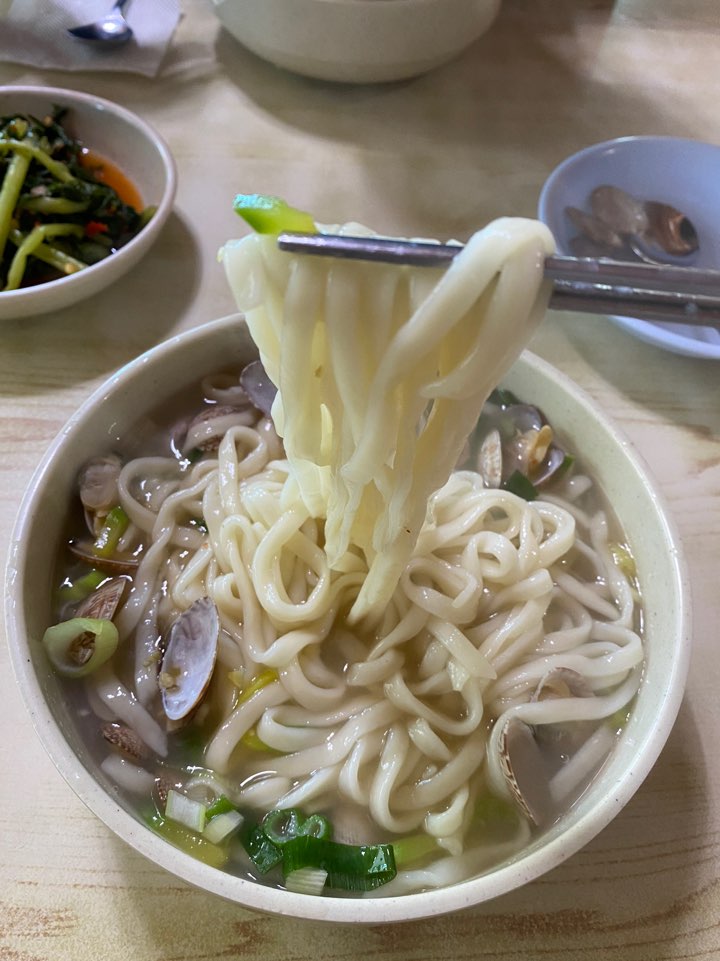 맨 처음에는 바지락을 몇 개 쏙쏙 먹고 ㅋㅋㅋ 김치 없이 면부터 호로록~~ 먹어야 해요.