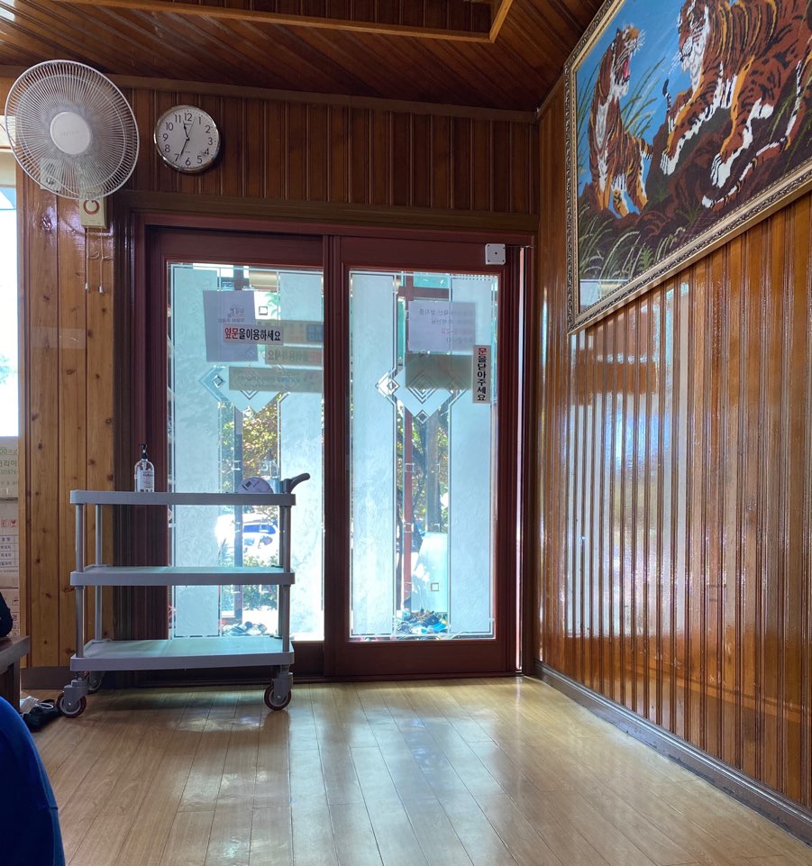 여기 정면으로 보이는 곳이 입구예요. 구옥의 중문 느낌이죠? 호랑이 그림 그려져 있는 것도 퀼트? 인지 그 실로 해서 만든 거였어요.ㅋㅋㅋㅋ 정감이 느껴지는 그런 ㅋㅋㅋㅋ