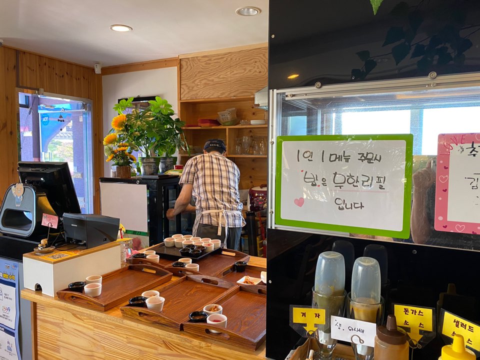 주방은 다 보일 수 있도록 오픈되어 있더라고요. 메뉴 준비도 다 보이도록 해서 청결함이 눈에 보였네요.