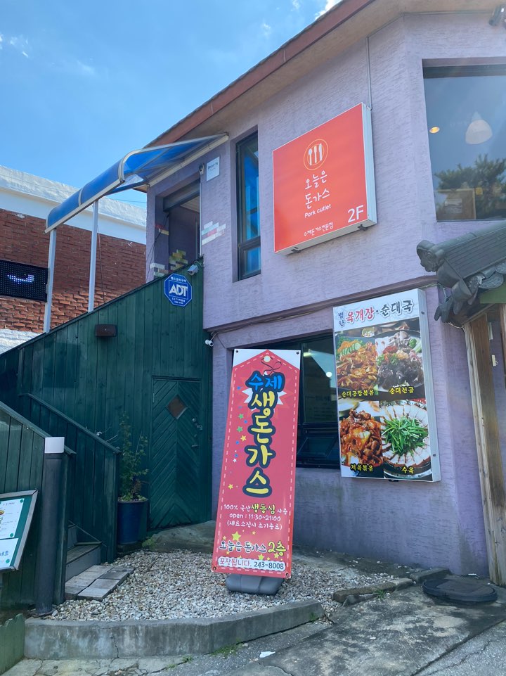 화서문 바로 초입에 있어서 찾기는 쉬울 거예요. 사진에서 보듯이 2층으로 올라가면 있어요:D 뭔가 돈까스집이? 하는데 갑자기 있어욬ㅋㅋㅋㅋㅋㅋㅋ 1층은 육개장과 순대국집인데 ㅋㅋㅋ 2층은 돈까스집 ㅋㅋㅋㅋㅋ