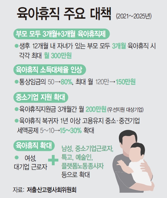 생후 12개월 이내의 자녀가 있는 부모 모두 3개월 육아휴직 시 각각 최대 월 300만원을 지급