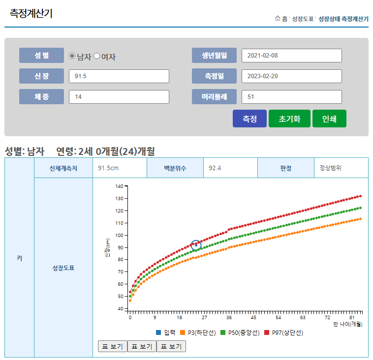 저도 조사하면서 처음 알게 된 정보인데요. 아이의 생년월일에 따라 키와 몸무게를 통해서 제대로 잘 성장하고 있는지 확인하는 계산기 입니다. 또래의 평균 값에 준하는지 확인하는데 의미가 있구요. 아이마다 성장속도가 다르기 때문에 평균치보다 조금 못 미친다고해서 걱정할 단계는 아니라고 합니다. 하지만 많이 차이가 난다면 한번쯤 고민해보셔야 할 듯 합니다.