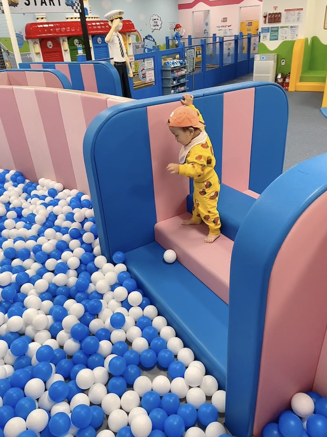이곳이 미끄럼틀과 볼풀장입니다. 그래도 쿠편 펜스로 안전하게 되어 있어서 대부분의 엄빠들이 아이는 풀어놓고 다들 핸드폰 보시거나 내부 카페에서 커피 드시더라구요. ㅋㅋㅋㅋ
