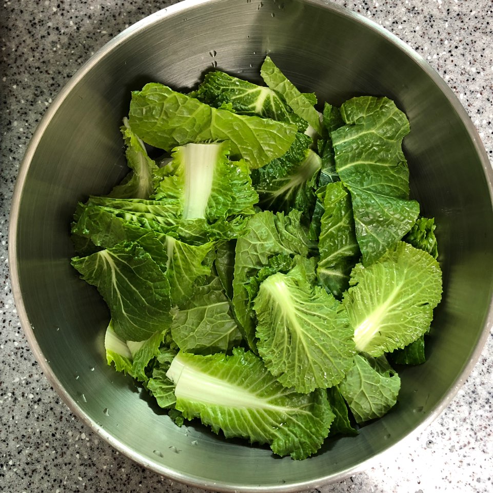 (봄동 손질&세척, 대파 잘게 썰기, 마늘 다지기)